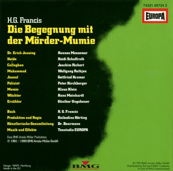 Die Begegnung mit der Mörder-Mumie (7) Neuausgabe 99/00 CD: Booklet, Seite 4 Format: Papier, 12,1 cm × 11,9 cm Zeitraum: 1999[-200x]