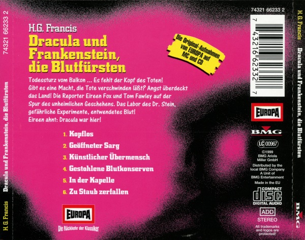 Dracula und Frankenstein, die Blutfürsten (2) Neuausgabe 99/00 CD: Booklet, Seite 4 Format: Papier, 12,1 cm × 11,9 cm Zeitraum: 1999[-200x]