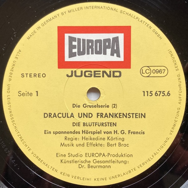 Dracula und Frankenstein, die Blutfürsten (2) Erstausgabe 81 LP: Label, Seite 1