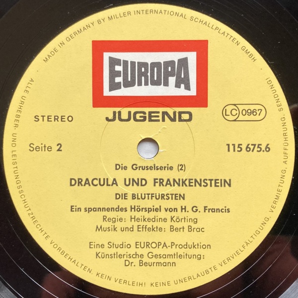 Dracula und Frankenstein, die Blutfürsten (2) Erstausgabe 81 LP: Label, Seite 2