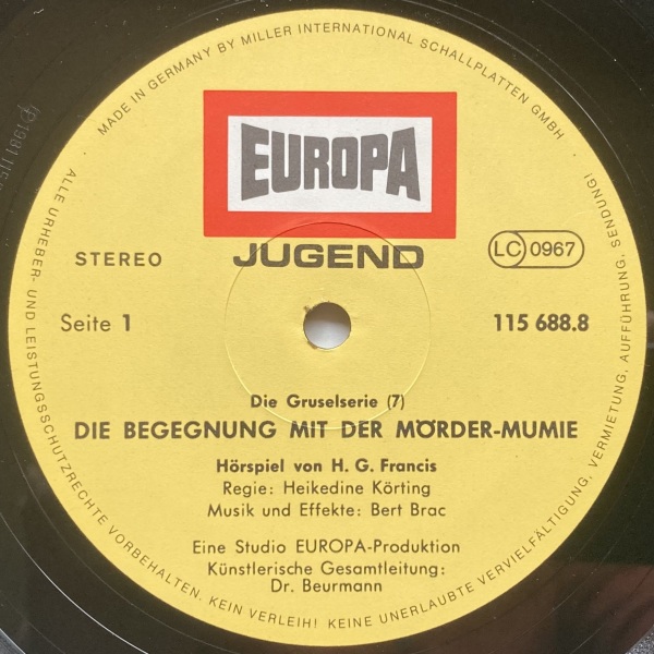 Die Begegnung mit der Mörder-Mumie (7) Erstausgabe 81 LP: Label, Seite 1