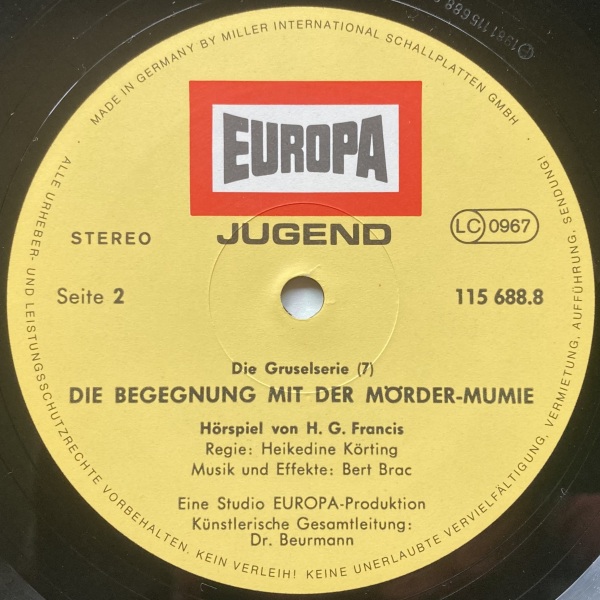 Die Begegnung mit der Mörder-Mumie (7) Erstausgabe 81 LP: Label, Seite 2