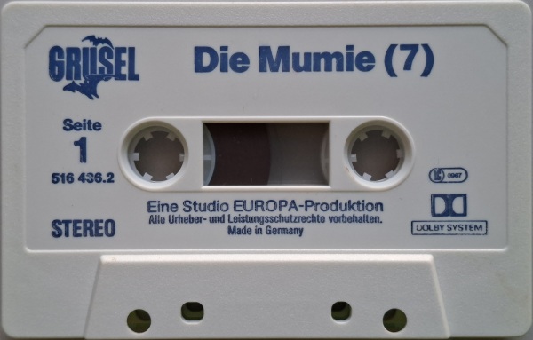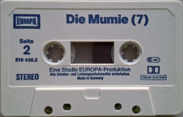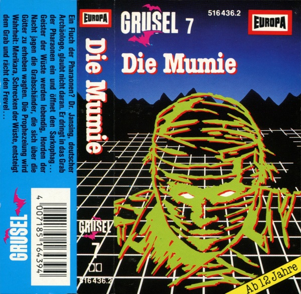 Die Mumie (7) Neuausgabe 87 MC-Einleger: Außenseite Format: Papier, 10,5 cm × 10,2 cm Zeitraum: 1987 [-1988?] Info: Variationen sind bislang nicht bekannt.