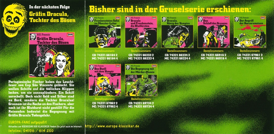 Die Begegnung mit der Mörder-Mumie (7) Neuausgabe 99/00 CD: Inlay, Innenseite Format: Papier, 15,1 cm × 11,8 cm Zeitraum: 1999[-200x] Info: Variationen sind bislang nicht bekannt. |